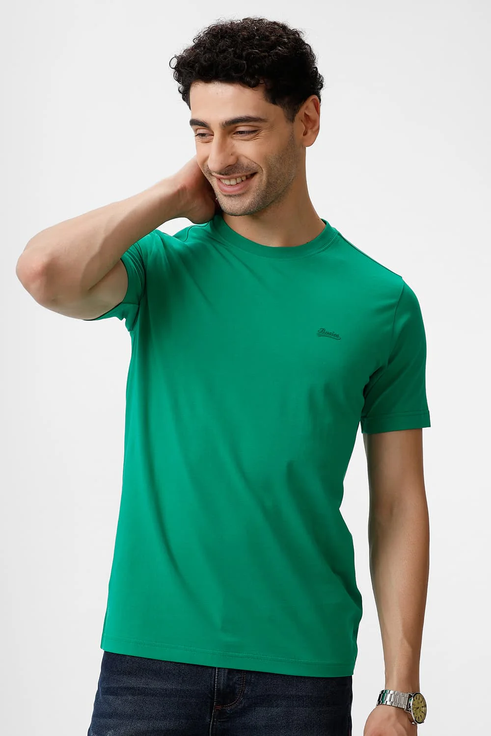 Keep it simple in this classic Polo muscle fit tshirt from the Back to Earth Collection by Basics. Made with durable combed compact yarn, it is specially washed and pre shrunk for a great fit everytime. A ribbed collar adds detail to this straight bottom tee that works for the day and evening with ease.